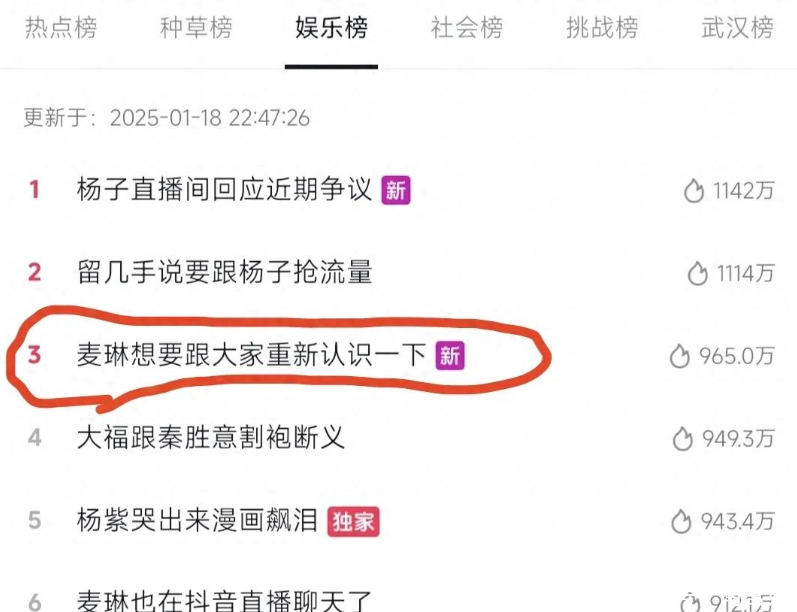 实则早在这之前,就有关“麦琳想要跟大家重新认识一下”的词条冲上热搜。